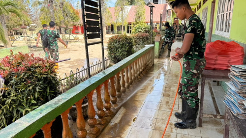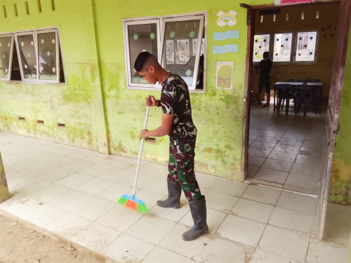 Taruna dan Kadet yang tergabung dalam Subsatgas 2/Hiu Satuan Tugas Taruna (Satgastar) Latsitarda Nusantara ke-46 kembali melaksanakan kegiatan pembersihan di SD Negeri 1 Tualang Cut, Kecamatan Manyak Payed, Kabupaten Aceh Tamiang.