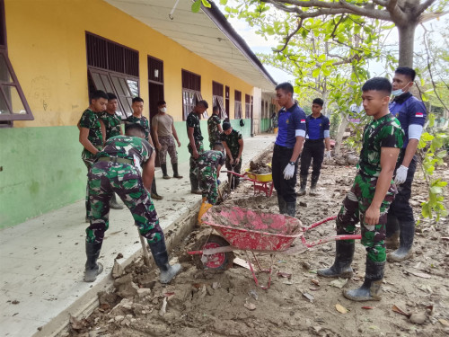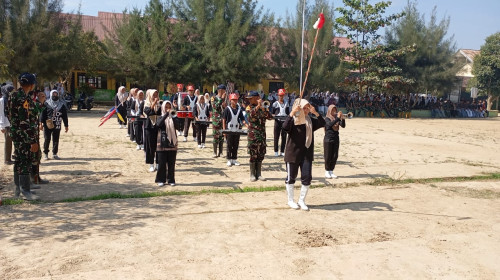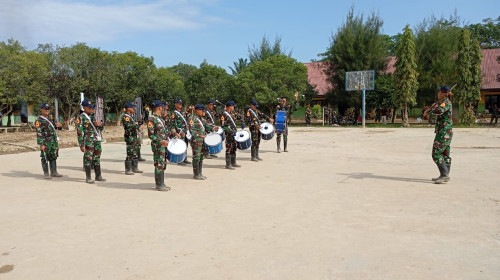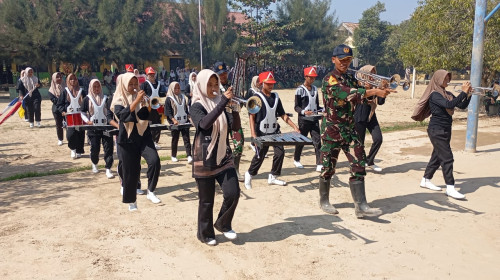 Taruna dan Kadet yang tergabung dalam Subsatgas 2/Hiu Satuan Tugas Taruna (Satgastar) Latsitarda Nusantara ke-46 melaksanakan kegiatan pembersihan lingkungan sekolah dan kolaborasi penampilan drumband bersama siswa-siswi SMA Negeri 1 Manyak Payed, Kabupaten Aceh Tamiang.