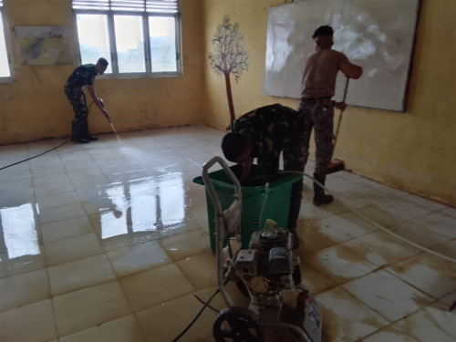Kegiatan pembersihan difokuskan pada ruang-ruang kelas yang terdampak banjir. Taruna dan Kadet bersama warga sekolah membersihkan sisa lumpur dan kotoran yang masih menempel, guna memulihkan kondisi ruang belajar agar kembali layak dan nyaman digunakan dalam proses belajar mengajar.