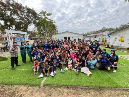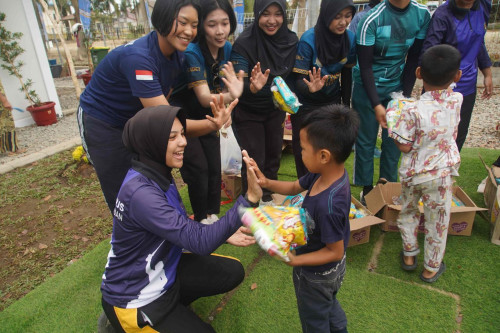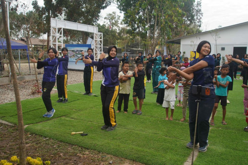 Taruna dan Kadet yang tergabung dalam Subsatgas 4/Kijang Satuan Tugas Taruna (Satgastar) Latsitarda Nusantara ke-46 melaksanakan kegiatan trauma healing bersama warga penghuni hunian sementara di Kualasimpang, Kabupaten Aceh Tamiang.