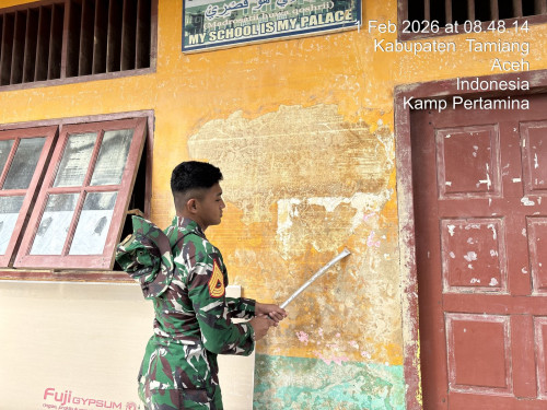Subsatgas 1/Macan Latsitarda Nusantara ke-46 kembali melaksanakan kegiatan pembersihan di SD Negeri 1 Rantau Pauh, Kecamatan Rantau, Aceh Tamiang. Kegiatan difokuskan pada pembersihan sisa lumpur mengeras di halaman Kelas.