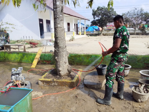 Subsatgas 2/Hiu Latsitarda Nusantara ke-46 kembali melaksanakan pembersihan di SD Negeri 1 Tualang Cut, Kecamatan Manyak Payed, Aceh Tamiang. Kegiatan pembersihan di fokuskan ke sisa materil lumpur mengeras di luar kelas, pembersihan ubin di depan kelas, dan merapihkan taman kecil depan kelas.