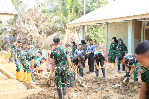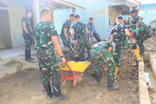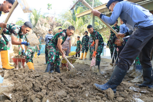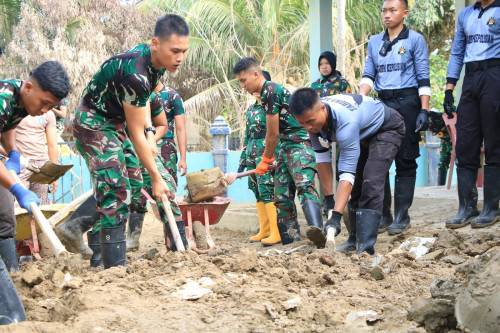 Subsatgas 3/Elang Latsitarda Nusantara ke-46 kembali melaksanakan pembersihan di SMP Islam Terpadu (IT) Syuhada, Kecamatan Karang Baru, Aceh Tamiang. Kegiatan pembersihan di fokuskan ke sisa materil lumpur mengeras di luar kelas dan halaman Sekolah
