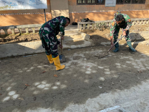 Subsatgas 3/Elang Latsitarda Nusantara ke-46 kembali melaksanakan pembersihan di SD Negeri Air Tenang, Tanah Terban, Kecamatan Karang Baru, Aceh Tamiang. Kegiatan pembersihan di fokuskan ke sisa materil lumpur mengeras di luar kelas dan halaman Sekolah