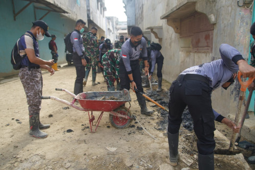 Subsatgas 4/Kijang Latsitarda Nusantara ke-46 melaksanakan pembersihan di Pasar Bawah Kualasimpang, Aceh Tamiang. Kegiatan pembersihan di fokuskan selokan yang ada disekitar Pasar Bawah Kualasimpang.