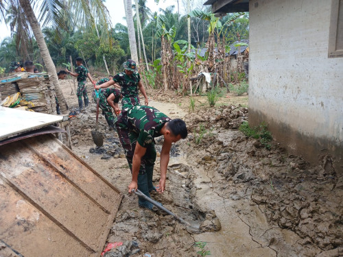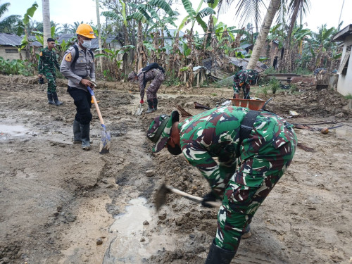 Kegiatan tersebut difokuskan pada pembersihan sisa materiil lumpur yang masih terdapat di area luar ruang kelas, sebagai dampak pascabencana banjir. Pembersihan dilakukan secara menyeluruh pada halaman sekolah, akses masuk kelas, serta lingkungan sekitar fasilitas pendidikan guna mendukung terciptanya kondisi belajar yang bersih, aman, dan nyaman bagi peserta didik.