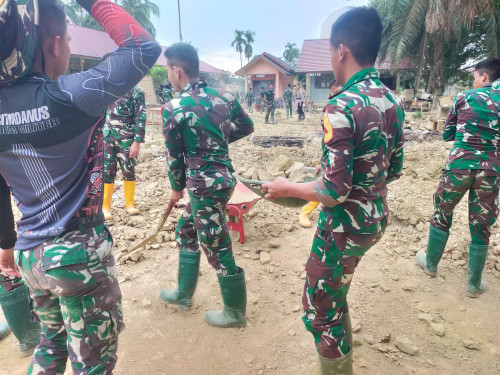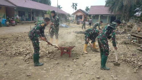 Taruna dan Kadet yang tergabung dalam Satuan Tugas Taruna (Satgastar) Latihan Integrasi Taruna Wreda Nusantara (Latsitarda Nusantara) ke-46 melaksanakan kegiatan pembersihan di SD Negeri 2 Kampung Durian, Kecamatan Rantau, Kabupaten Aceh Tamiang.