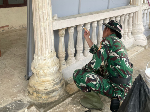 Taruna dan Kadet yang tergabung dalam Satuan Tugas Taruna (Satgastar) Latihan Integrasi Taruna Wreda Nusantara (Latsitarda Nusantara) ke-46 melaksanakan kegiatan pengecatan fasilitas di TK Aisyiyah Bustanul Athfal (ABA), Kecamatan Rantau, Kabupaten Aceh Tamiang.
