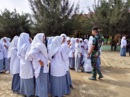 Taruna dan Kadet yang tergabung dalam Satuan Tugas Taruna (Satgastar) Latihan Integrasi Taruna Wreda Nusantara (Latsitarda Nusantara) ke-46 melaksanakan kegiatan pengabdian kepada masyarakat di SMA Negeri 1 Manyak Payed, Kabupaten Aceh Tamiang.