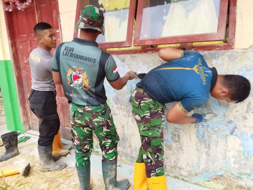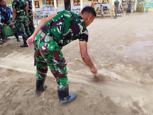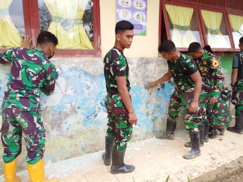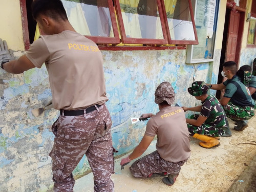 Taruna dan Kadet yang tergabung dalam Satuan Tugas Taruna (Satgastar) Latihan Integrasi Taruna Wreda Nusantara (Latsitarda Nusantara) ke-46 melaksanakan kegiatan pengecatan fasilitas pendidikan di TK Negeri Pembina Manyak Payed, Kabupaten Aceh Tamiang.