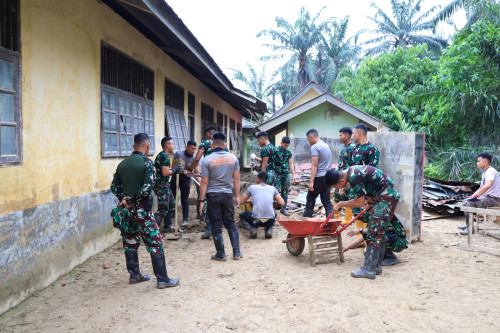 Taruna dan Kadet yang tergabung dalam Satuan Tugas Taruna (Satgastar) Latihan Integrasi Taruna Wreda Nusantara (Latsitarda Nusantara) ke-46 melaksanakan kegiatan pembersihan lingkungan di SD Negeri Air Tenang yang berlokasi di Desa Tanah Terban, Kecamatan Karang Baru, Kabupaten Aceh Tamiang.