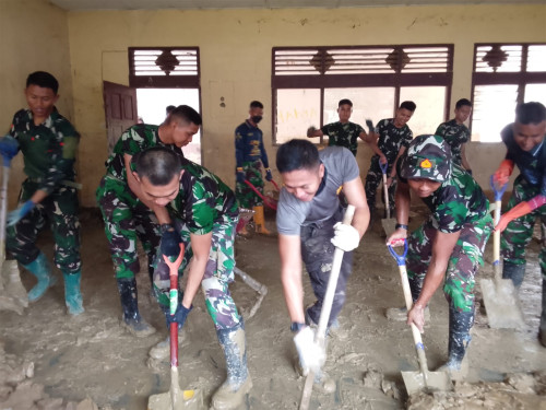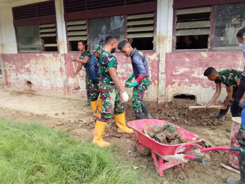 Taruna dan Kadet yang tergabung dalam Sub Satuan Tugas (Subsatgas) 1/Macan Satuan Tugas Taruna Latihan Integrasi Taruna Wreda Nusantara (Satgastar Latsitarda Nusantara) ke-46 melaksanakan kegiatan pembersihan di SMP Negeri 1 Manyak Payed