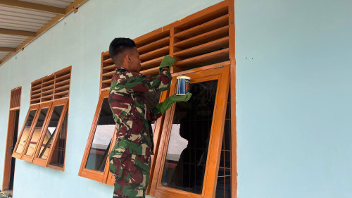 Taruna dan Kadet yang tergabung dalam Sub Satuan Tugas (Subsatgas) 3/Elang Satuan Tugas Taruna Latihan Integrasi Taruna Wreda Nusantara (Satgastar Latsitarda Nusantara) ke-46 melaksanakan kegiatan pengecetan di MTS Al Ikhlas Tanah Terban.