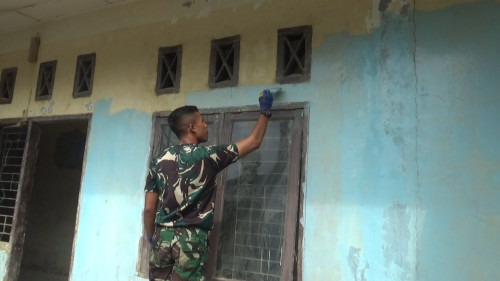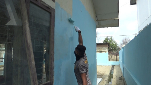 Taruna dan Kadet yang tergabung dalam Sub Satuan Tugas (Subsatgas) 3/Elang Satuan Tugas Taruna Latihan Integrasi Taruna Wreda Nusantara (Satgastar Latsitarda Nusantara) ke-46 melaksanakan kegiatan pengecatan di Poskesdes Menanggini.