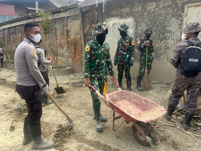 Taruna dan Kadet yang tergabung dalam Sub Satuan Tugas (Subsatgas) 4/Kijang Satuan Tugas Taruna Latihan Integrasi Taruna Wreda Nusantara (Satgastar Latsitarda Nusantara) ke-46 melaksanakan pembersihan di Dusun Amaliah, Kualasimpang.