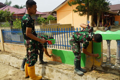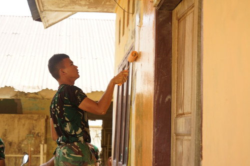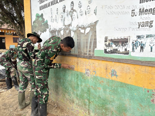 Subsatgas 1/Macan Satgastar Latsitarda Nusantara ke-46 kembali melaksanakan kegiatan pengabdian kepada masyarakat melalui pengecatan fasilitas pendidikan di SD Negeri 1 Rantau Pauh, Kabupaten Aceh Tamiang.