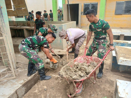 Subsatgas 1/Macan Satgastar Latsitarda Nusantara ke-46 kembali melaksanakan kegiatan pengabdian kepada masyarakat melalui aksi pembersihan di SMA Negeri 1 Kejuruan Muda, Rantau, Kabupaten Aceh Tamiang.