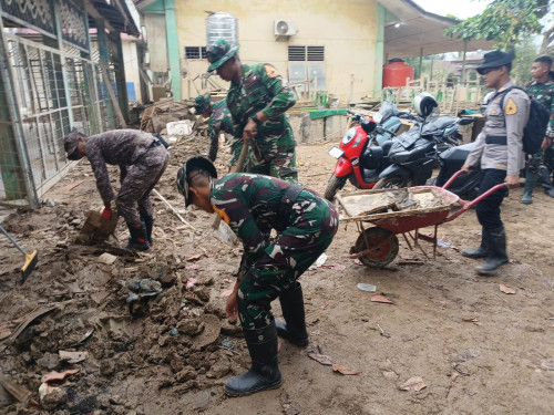 Kegiatan pembersihan difokuskan pada area luar sekolah, termasuk halaman dan lingkungan sekitar yang terdampak sisa lumpur serta material pascabanjir. Taruna Akademi TNI dan Kadet yang tergabung dalam Subsatgas 1/Macan melaksanakan kegiatan secara gotong royong guna memulihkan kebersihan dan kenyamanan lingkungan sekolah.
