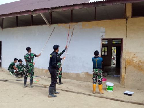 Subsatgas 2/Hiu Satgastar Latsitarda Nusantara ke-46 kembali melaksanakan kegiatan pengabdian kepada masyarakat melalui pengecatan di SD Negeri 1 Tualang Cut, Kecamatan Manyak Payed, Kabupaten Aceh Tamiang.