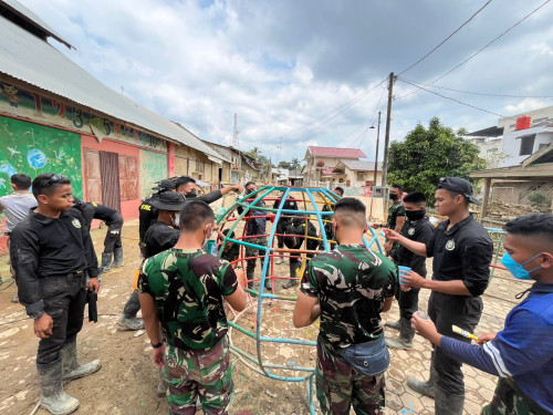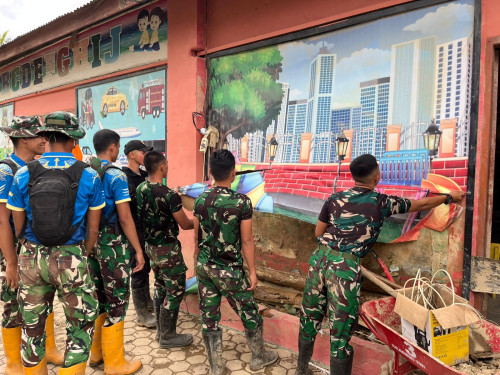 Taruna dan Kadet Subsatgas 4/Kijang pembersihan di TK Pelangi Anak