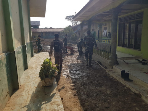 Pembersihan difokuskan pada area lingkungan sekolah yang terdampak kondisi pascabanjir, meliputi halaman dan fasilitas penunjang pendidikan. Taruna dan Kadet secara bergotong royong membersihkan sisa lumpur dan material lainnya guna memulihkan kebersihan serta kenyamanan lingkungan sekolah.