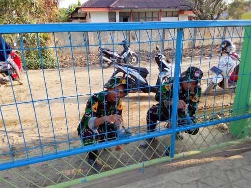 Kegiatan pengecatan difokuskan pada bagian depan kelas dan fasilitas pendukung sekolah yang terdampak akibat kondisi pascabanjir. Taruna dan Kadet melaksanakan pengecatan secara bergotong royong dengan penuh ketelitian dan semangat pengabdian guna memperbaiki tampilan lingkungan sekolah agar kembali bersih, rapi, dan nyaman.