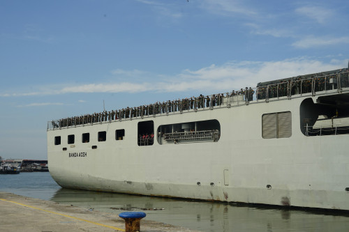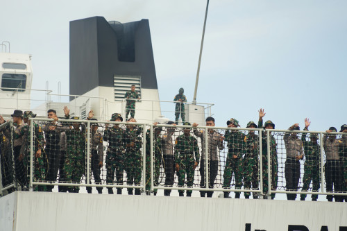 Lintas laut menuju Jakarta dilaksanakan menggunakan KRI Banda Aceh dan KRI
