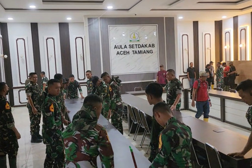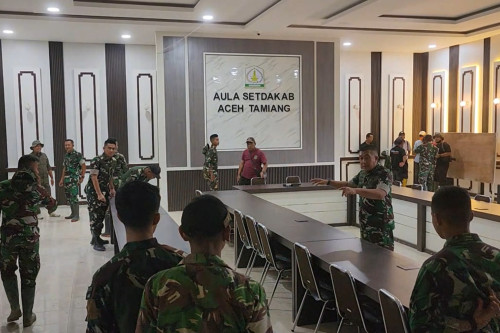 Selain memberikan arahan, Letjen TNI Sidharta Wisnu Graha juga memimpin langsung kegiatan pembersihan dan penataan ruangan yang akan digunakan sebagai posko terpadu di Aula Pemkab Aceh Tamiang. Kegiatan ini bertujuan untuk memastikan posko siap digunakan sebagai pusat koordinasi dan pengendalian kegiatan pemulihan.