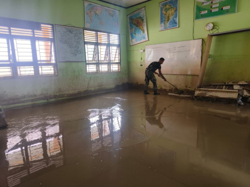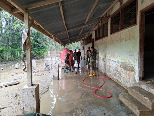 Kegiatan pembersihan difokuskan pada penghilangan lumpur yang menutupi halaman sekolah, teras, serta ruangan-ruangan kelas yang terdampak banjir. Upaya tersebut dilakukan guna menciptakan lingkungan belajar yang bersih, aman, dan nyaman bagi para siswa serta tenaga pendidik agar aktivitas pendidikan dapat kembali berjalan normal.