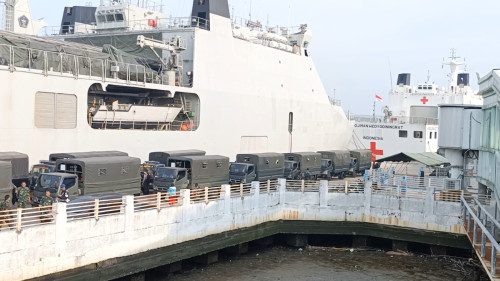 tiba di Pelabuhan Belawan, Kamis (22/1/2026). Kedatangan pasukan tersebut
