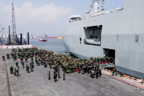 materiil serta embarkasi ke KRI TNI AL, bertempat di Dermaga Tanjung Emas,